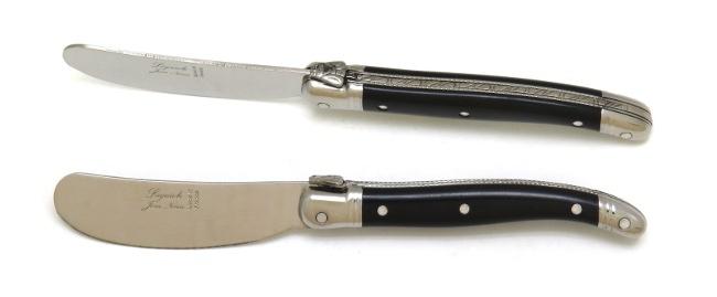 Elégant manche noir pour ce couteau à tartiner Laguiole de Thiers !