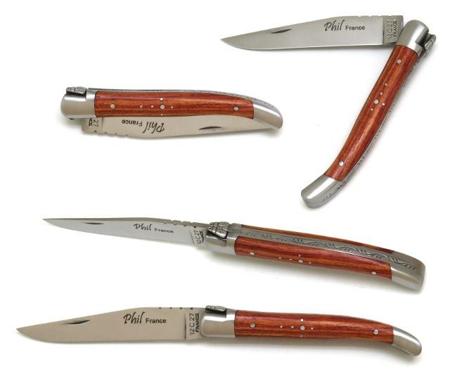 Descriptif - Couteau pliable Laguiole PHIL en bois de rose - 1 lame - 2 mitres inox - manche 11 cm