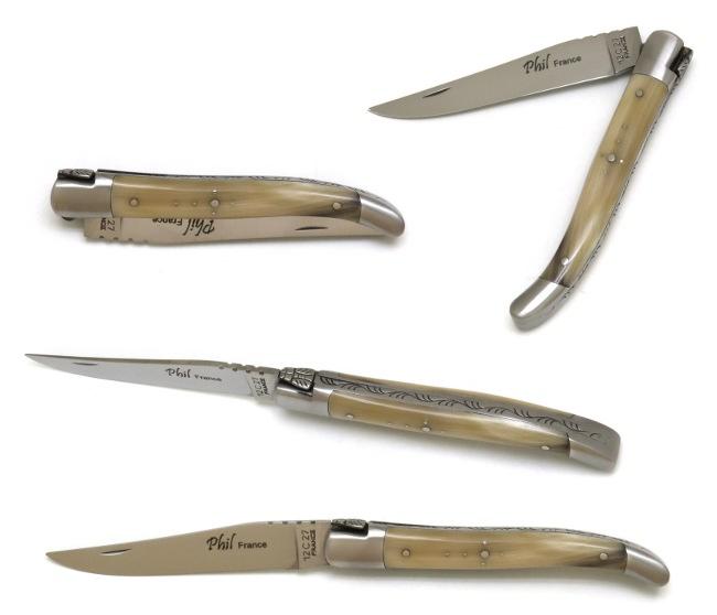 Côté fabrication : ce couteau pliant Laguiole est fabriqué par Phil, artisan coutelier de Thiers en France