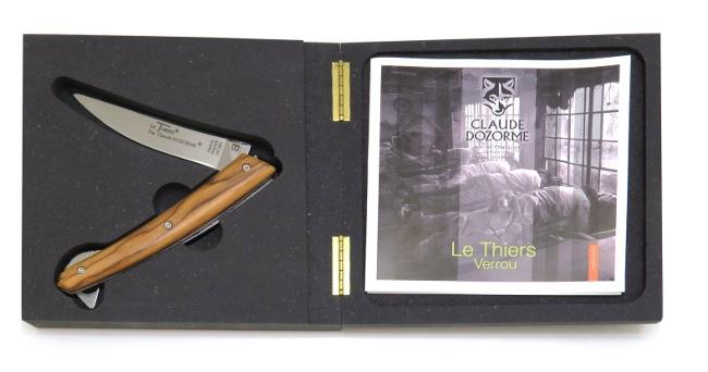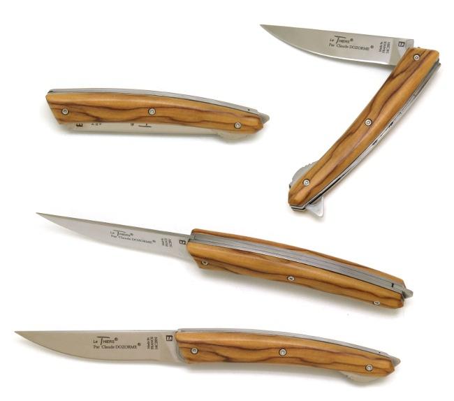 Descriptif - Couteau de poche LE THIERS® verrou en bois d'olivier par C laude Dozorme manche 12 cm