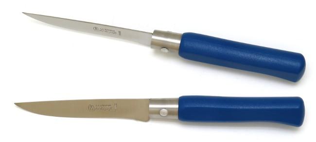 Pour la partie technique : ces couteaux Country disposent d'une lame à tranchant LISSE en acier inoxydable de finition mate et d'épaisseur 15/10 mm. Le manche est en résine de couleur.