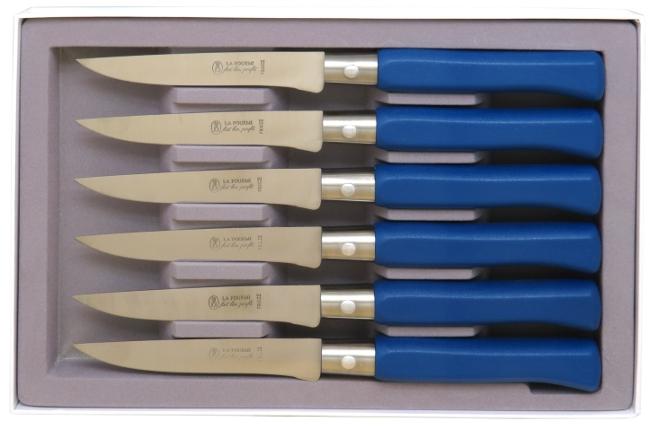 Vous apprécierez la couleur vive du manche en résine bleu pétrole de ces couteaux de table de fabrication Française. Le matériau du manche est particulièrement agréable au toucher et ne nécessite aucun entretien particulier.