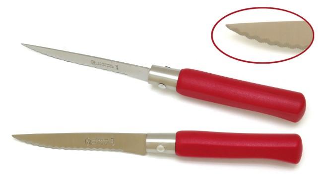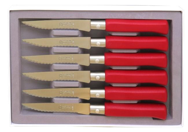 Descriptif - Coffret de 6 couteaux de table Country manche rouge - couteau de table à lame microdentée