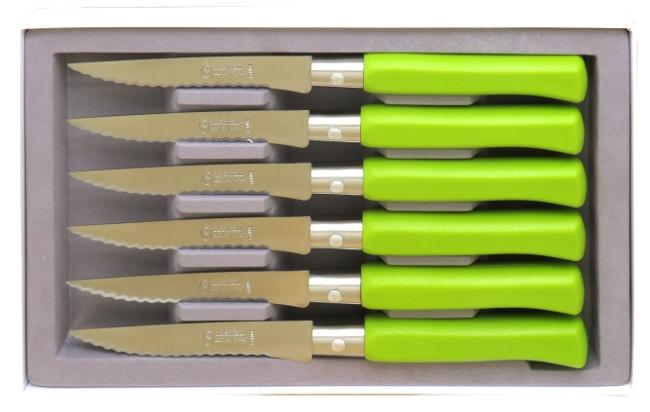 Descriptif - Coffret de 6 couteaux de table Country manche vert anis - couteau de table à lame microdentée