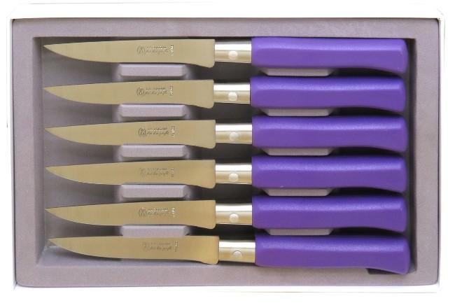 Descriptif - Coffret de 6 couteaux de table Country manche violet - couteau de table à lame lisse