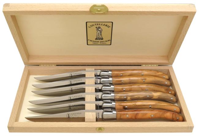 COFFRET 6 COUTEAUX DE TABLE LAGUIOLE EN BOIS D' OLIVIER