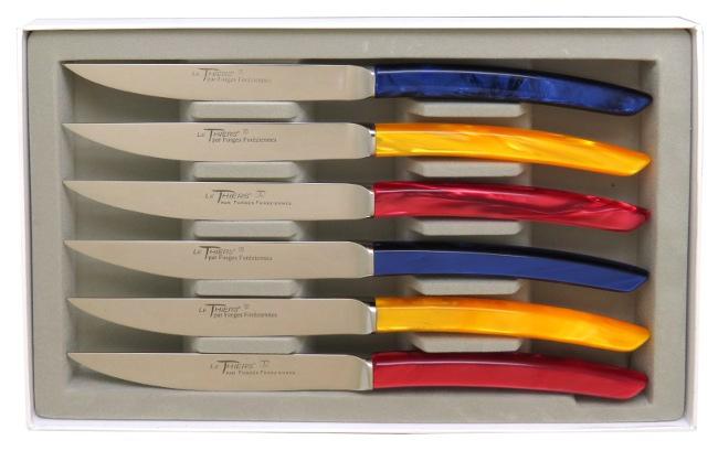 Descriptif - Coffret de 6 couteaux de table LE THIERS® en couleur - Manche acrylique bleu, orange et rouge