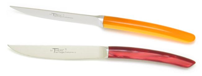 Descriptif - Coffret de 6 couteaux de table LE THIERS® en couleur - Manche acrylique orange et rouge