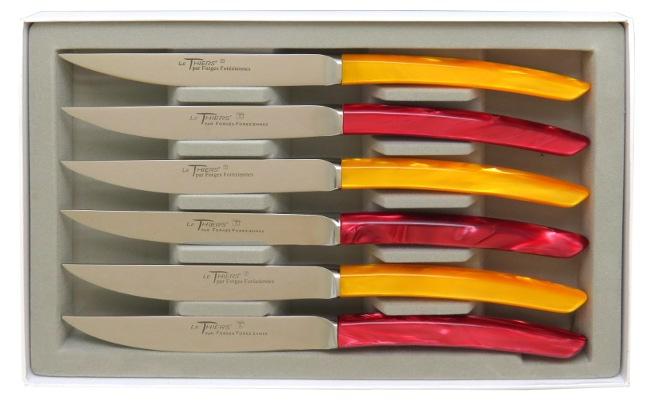 Un coffret de 6 couteaux de table Le Thiers® aux couleurs ensoleillées de rouge et d'orange