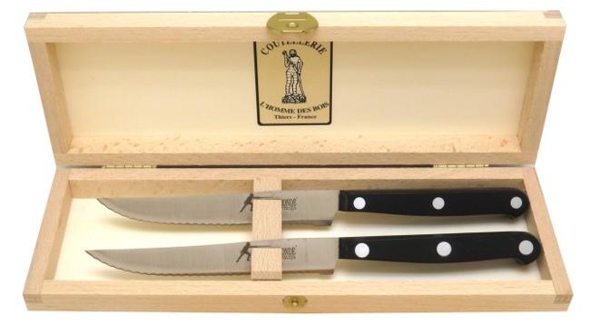 100% fait THIERS pour cet ensemble de 2 couteaux steak à dents en coffret bois !
