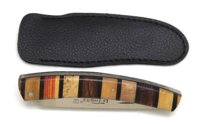Avec ce couteau pliant Le Thiers®en marqueterie, un étui pour la poche en simili cuir noir est offert par notre coutellerie artisanale.